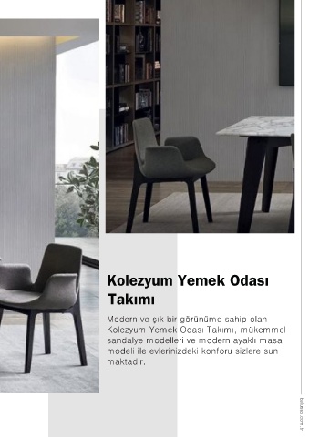 Kolezyum Yemek Odası Takımı Modern ve şık bir görünüme sahip olan Kolezyum Yemek Odası Takımı, mükemmel sandalye modelleri ve modern ayaklı masa modeli ile evlerinizdeki konforu sizlere sun- maktadır. 133 belusso.com.tr