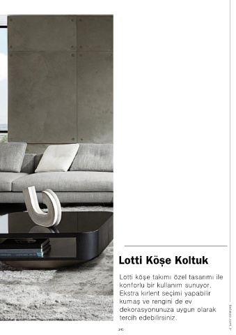 Lotti Köse Koltuk . Lotti köşe takımı özel tasarımı ile konforlu bir kullanım sunuyor. Ekstra kırlent seçimi yapabilir kumaş ve rengini de ev dekorasyonunuza uygun olarak tercih edebilirsiniz. belusso.com.tr 145