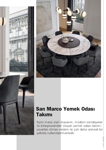 San Marco Yemek Odası Takımı Açılır masa olan masanın, modern sanldayeler ile birleşmesinden oluşan yemek odası takımı; yuvarlak olması nedeni ile çok daha işlevsel bir şekilde kullanılabilmektedir. 151 belusso.com.tr