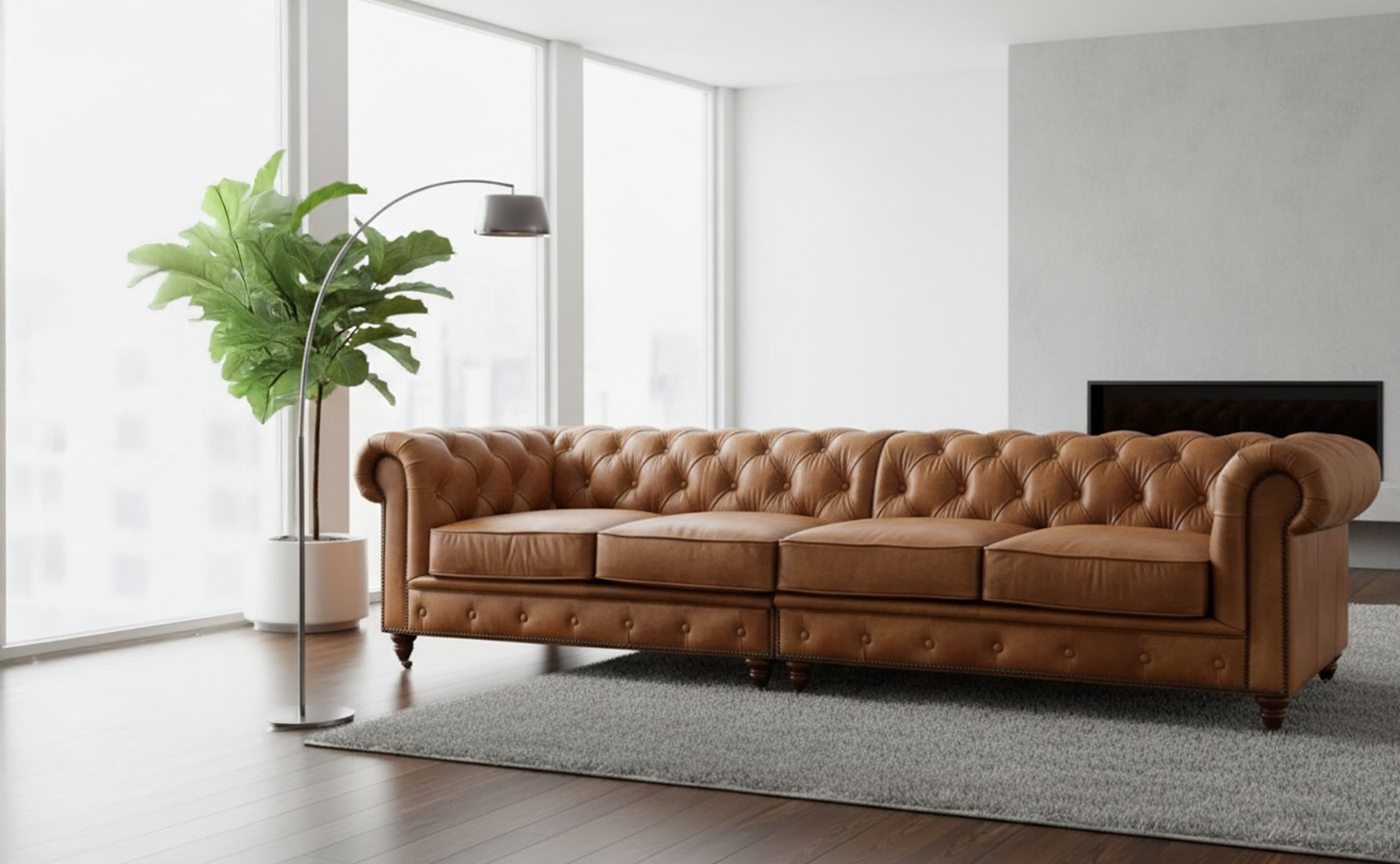 Geniş aileler ve misafir ağırlamayı sevenler için Belusso Mobilya'dan benzersiz bir çözüm: Chester 4'lü Koltuk. Zamansız klasik duruşu, modern detaylarla birleşerek mekânınıza anında lüks ve sofistike bir hava katıyor. Özellikle büyük salonlar, lobiler ve geniş ofis alanları için tasarlanan bu parça, konfor ve ihtişamı bir araya getiriyor.Chesterfield stilinin ikonik özelliklerini taşıyan bu 4'lü kanepe, boyutunun getirdiği heybetli duruşla dikkat çeker.Koltuğun sırt ve kollarını süsleyen derin düğmeli (kapitone) detaylar, el işçiliğinin kalitesini ve klasik stili en üst düzeyde yansıtır.Kıvrımlı ve dışa dönük kolçaklar, geleneksel Chesterfield zarafetini korurken, modern, temiz çizgilerle döşenmiş mekânlara mükemmel bir yumuşaklık katar.Görselde görüldüğü gibi, minimal ve aydınlık bir odada kahverengi derinin sıcaklığı ve klasik formuyla güçlü bir kontrast oluşturarak, odanın ana odak noktası haline gelir.